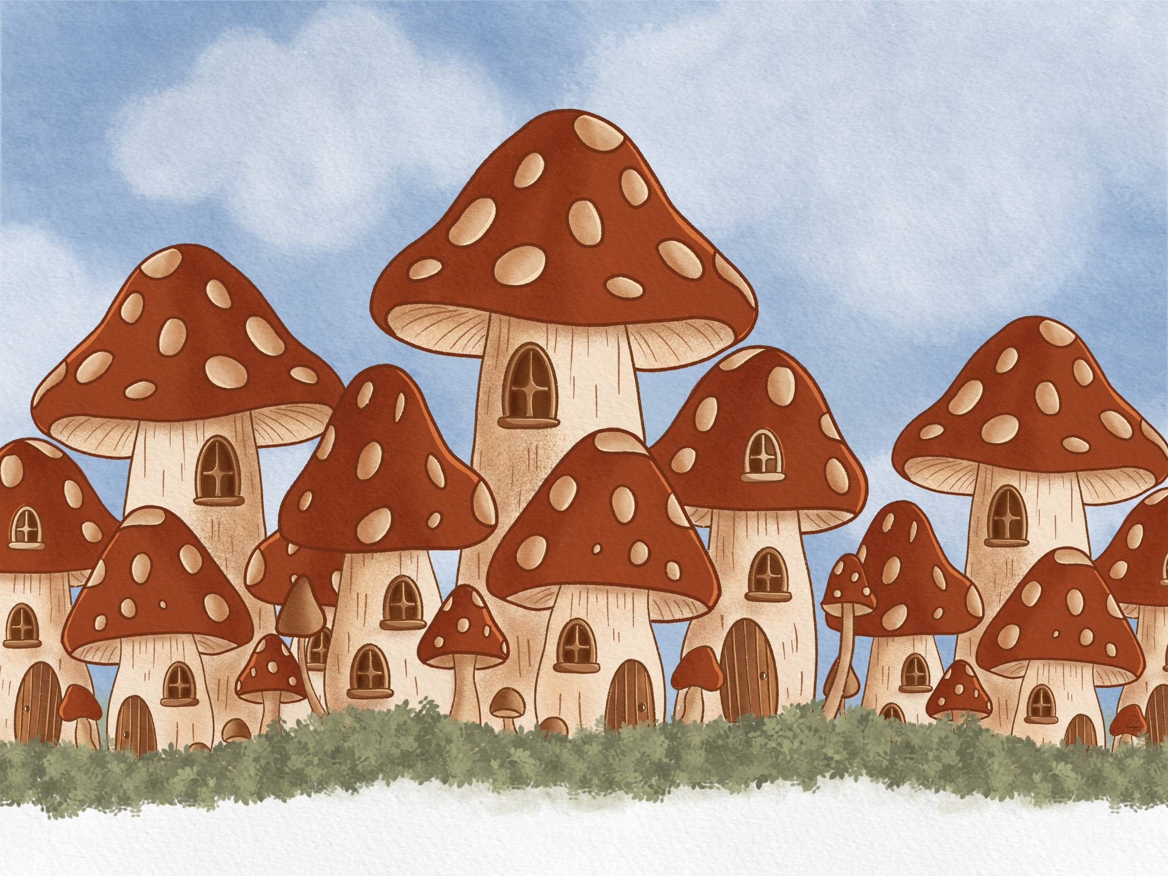 🍄 Freebie Vault: Download your Mushroom Village illustration (portrait + landscape)